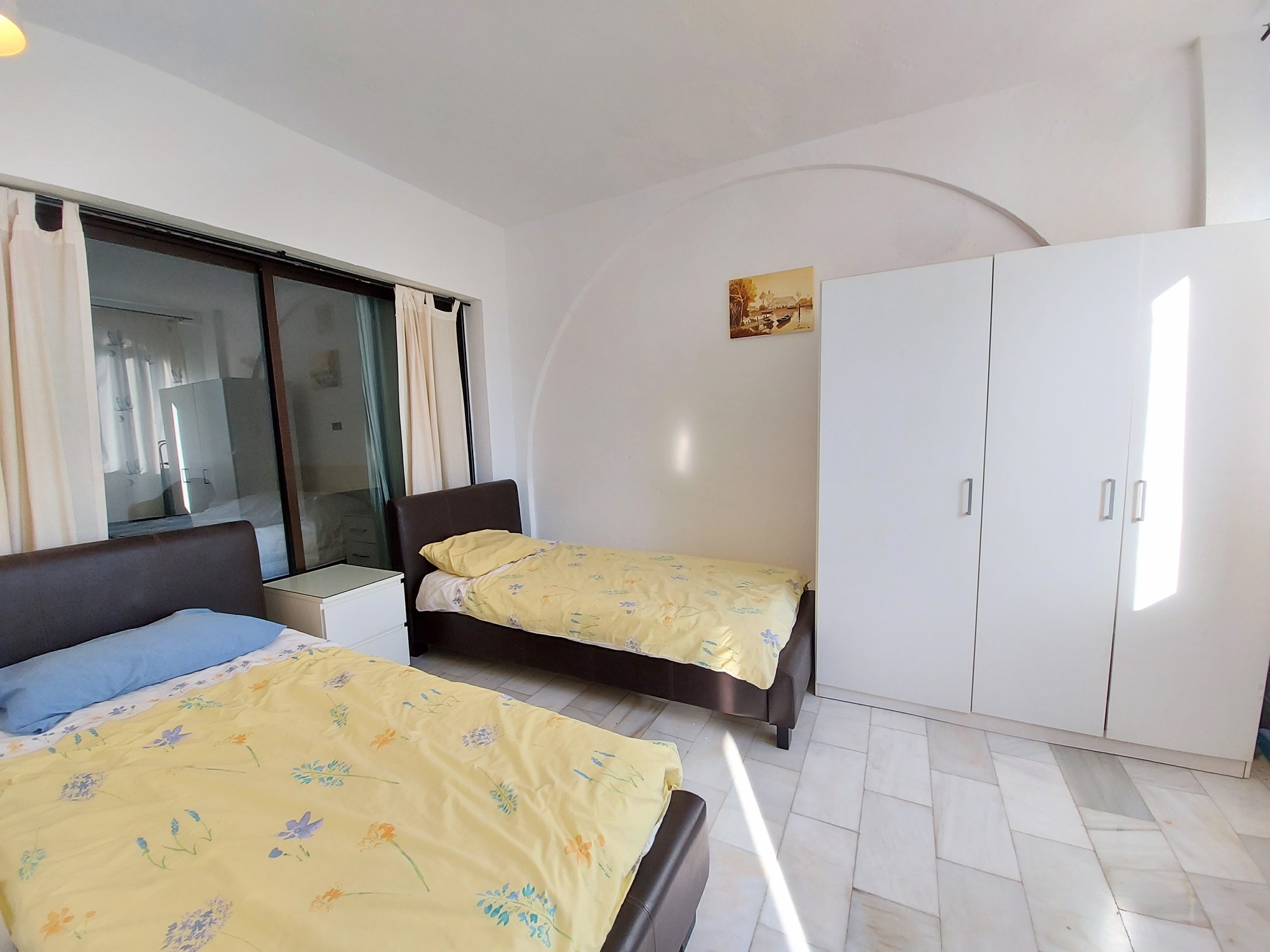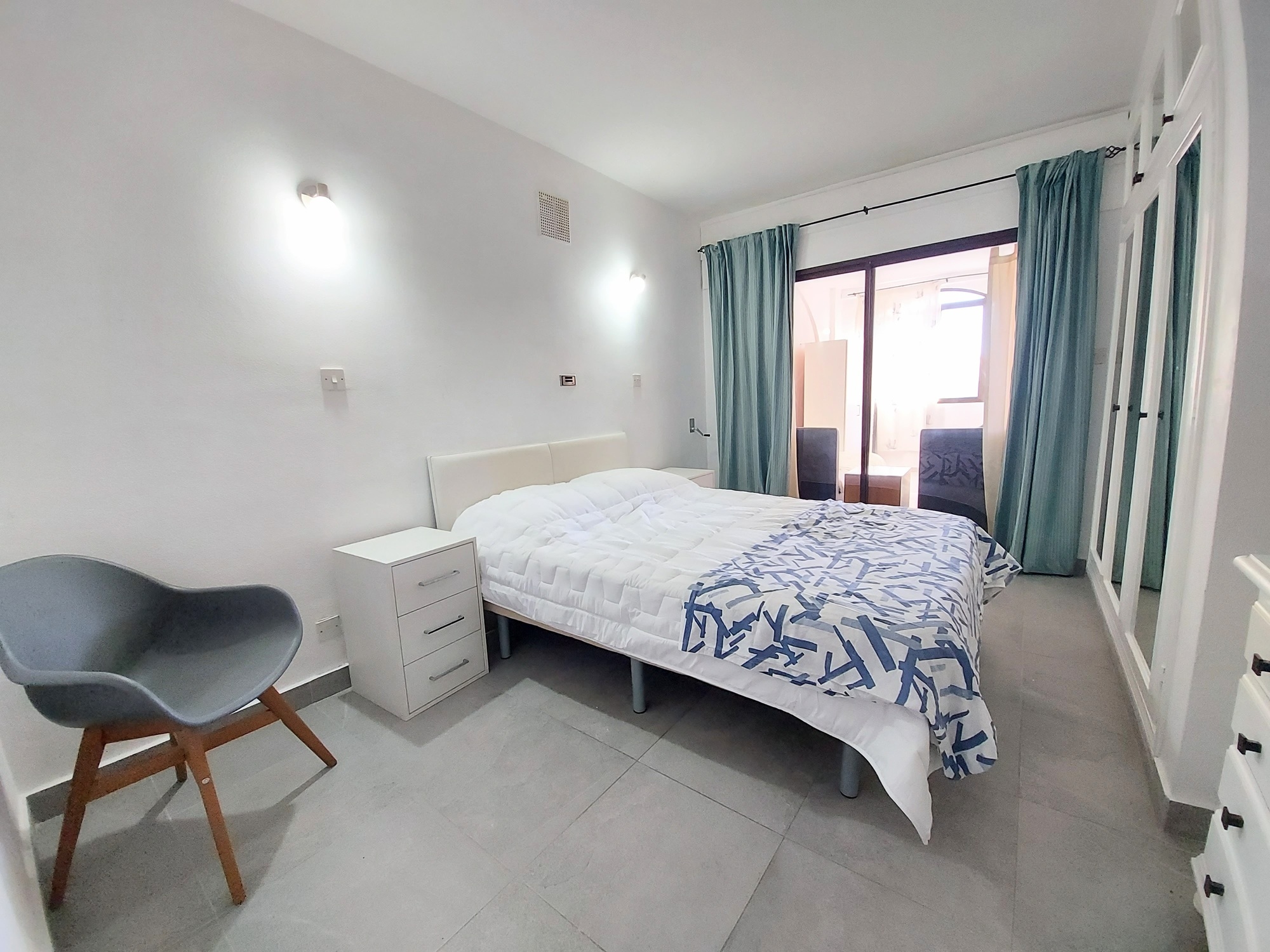 The apartment features a fully fitted kitchen and bathroom. The bright and airy living space benefits from an easterly aspect, and access to an enclosed terrace, currently used as a bedroom with twin beds. This room is also accessed via the master bedroom, making it ideal for a young family, or as a guest bedroom. Features include reverse cycle A/C throughout, and amenities include a communal swimming pool and parking.