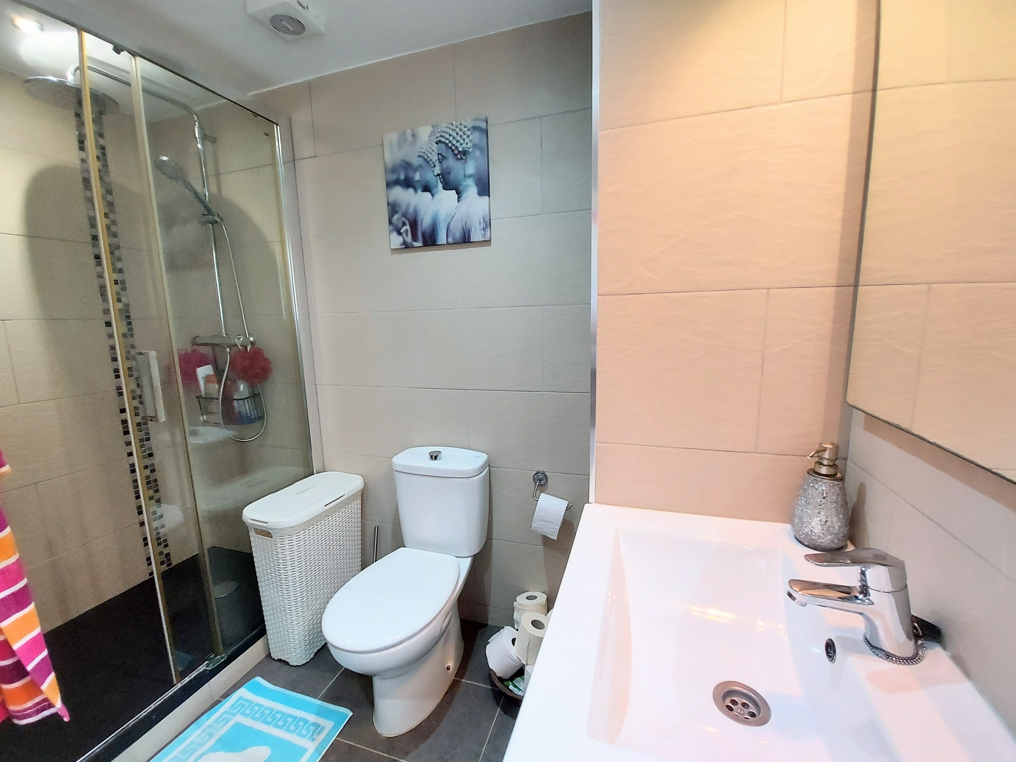 The apartment is finished with high-quality tiled flooring throughout and benefits from air-conditioning for year-round comfort. For those with a vehicle, a parking space rental is an optional and convenient addition.
