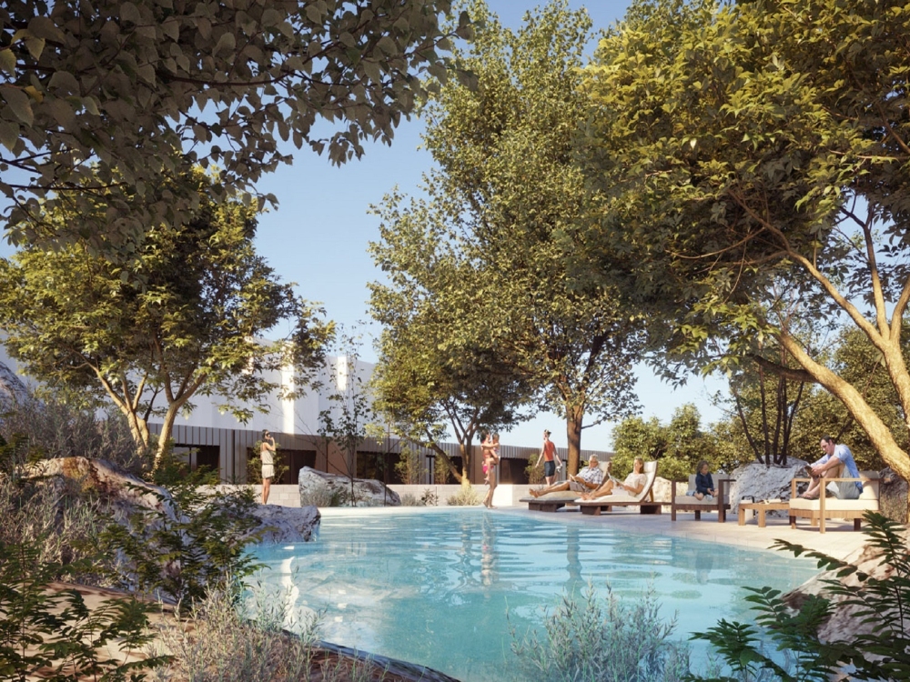 Residents enjoy access to a state-of-the-art gymnasium, a stunning infinity pool, and a unique "ecological pool" set directly into the natural rock face.